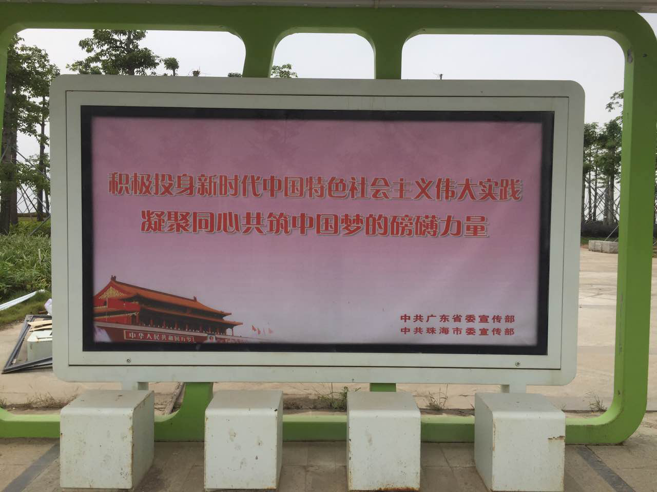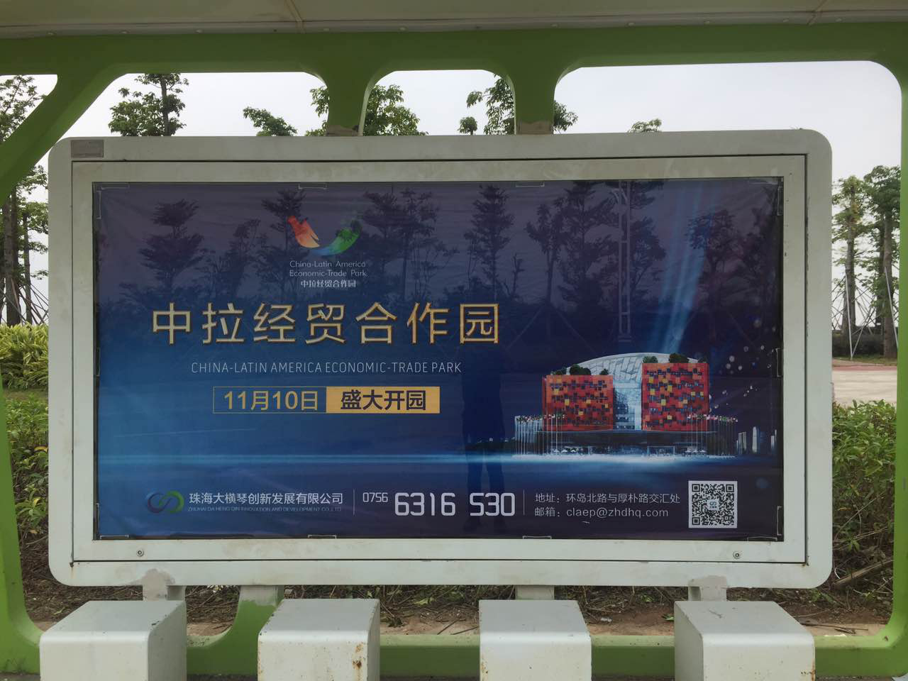 城資公司作為橫琴新區廣告資源特許經營單位,為配合做好中拉國際博覽會宣傳工作,利用公共巴士站、戶外立柱廣告、建設項目圍墻圍擋等多方位、立體化的資源優勢,加大對中拉博覽會的宣傳和推廣,同時向中外賓客充分展示了十九大的精神內容,積極傳播正能量,發出中國好聲音!