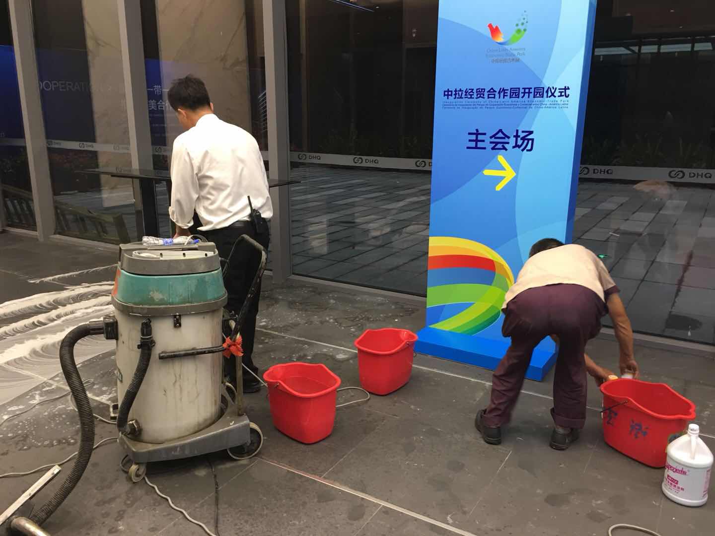 11月10日,中拉經貿合作園正式開園,為全力保障開園活動,城資公司在項目施工階段即已積極介入前期工作,力爭提供最優質的物業服務。在開園活動的準備階段,城資公司投入大量人力、物力和設施設備開展園區的清潔開荒工作,面對大范圍的作業面和高強度的作業量,城資公司服務團隊以專業和執著的精神,克服諸多困難,不間斷持續作業,以最強的團隊作戰能力完成了不可能的任務。