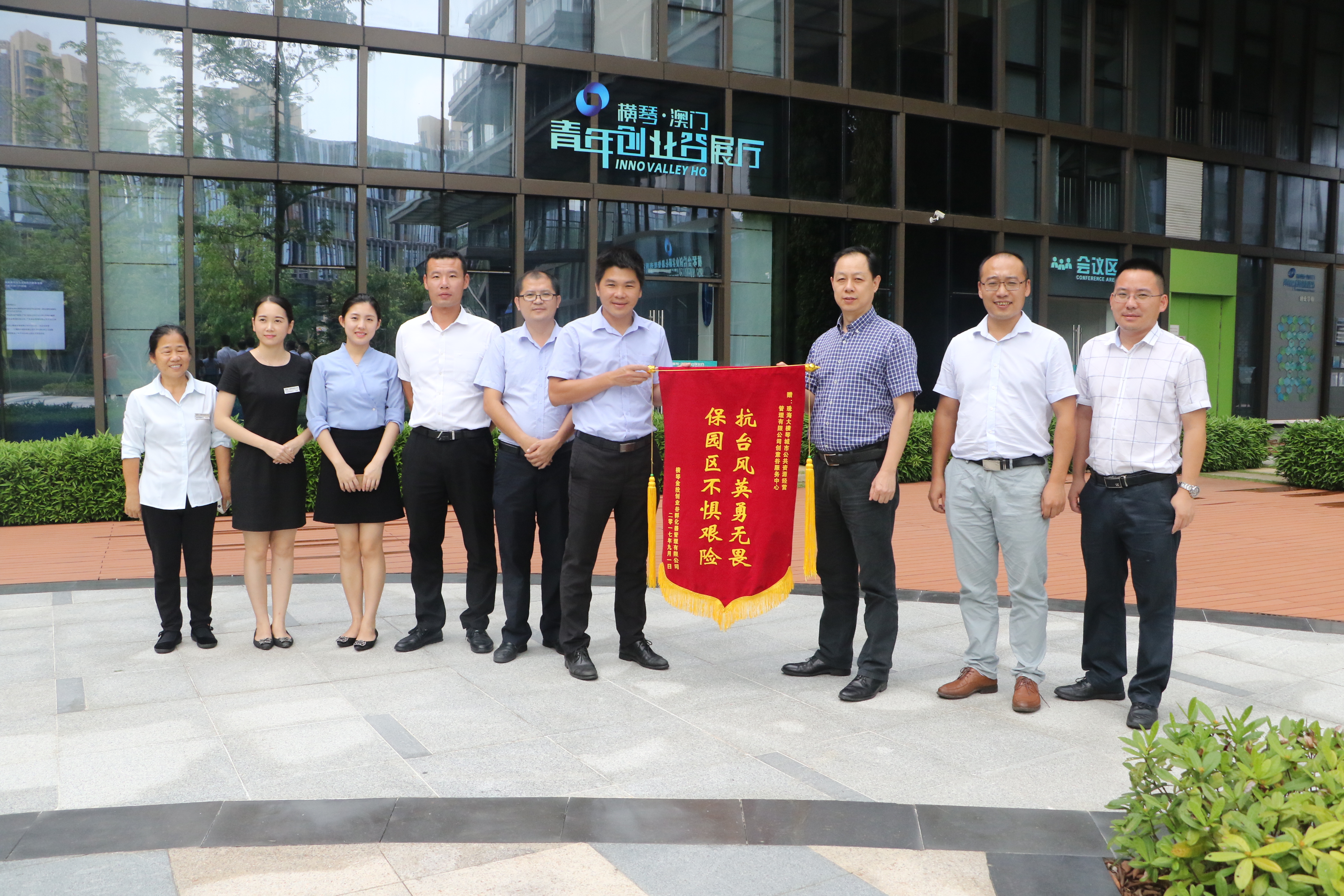 贈送的感謝錦旗:抗臺風英勇無畏,保園區不懼艱險