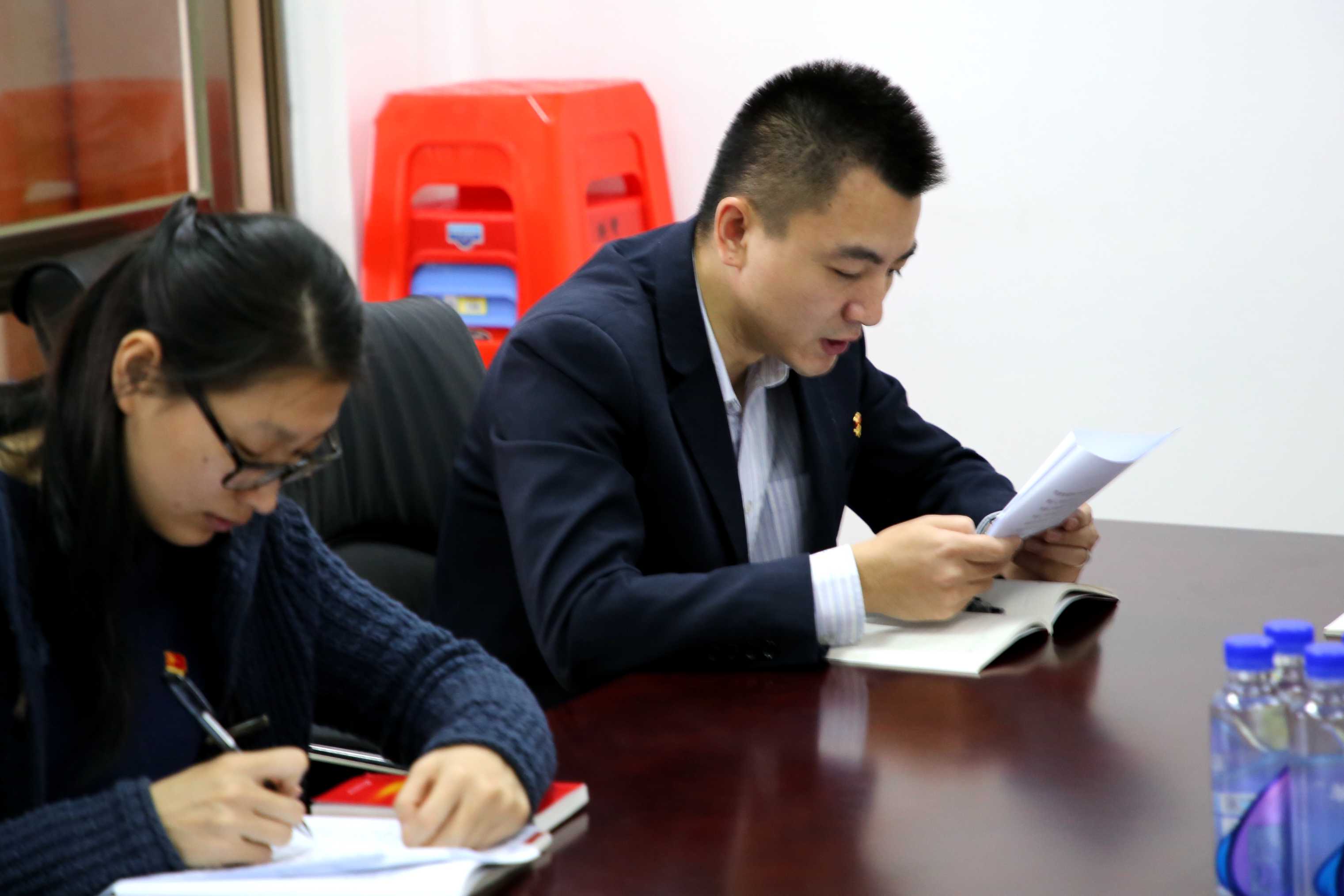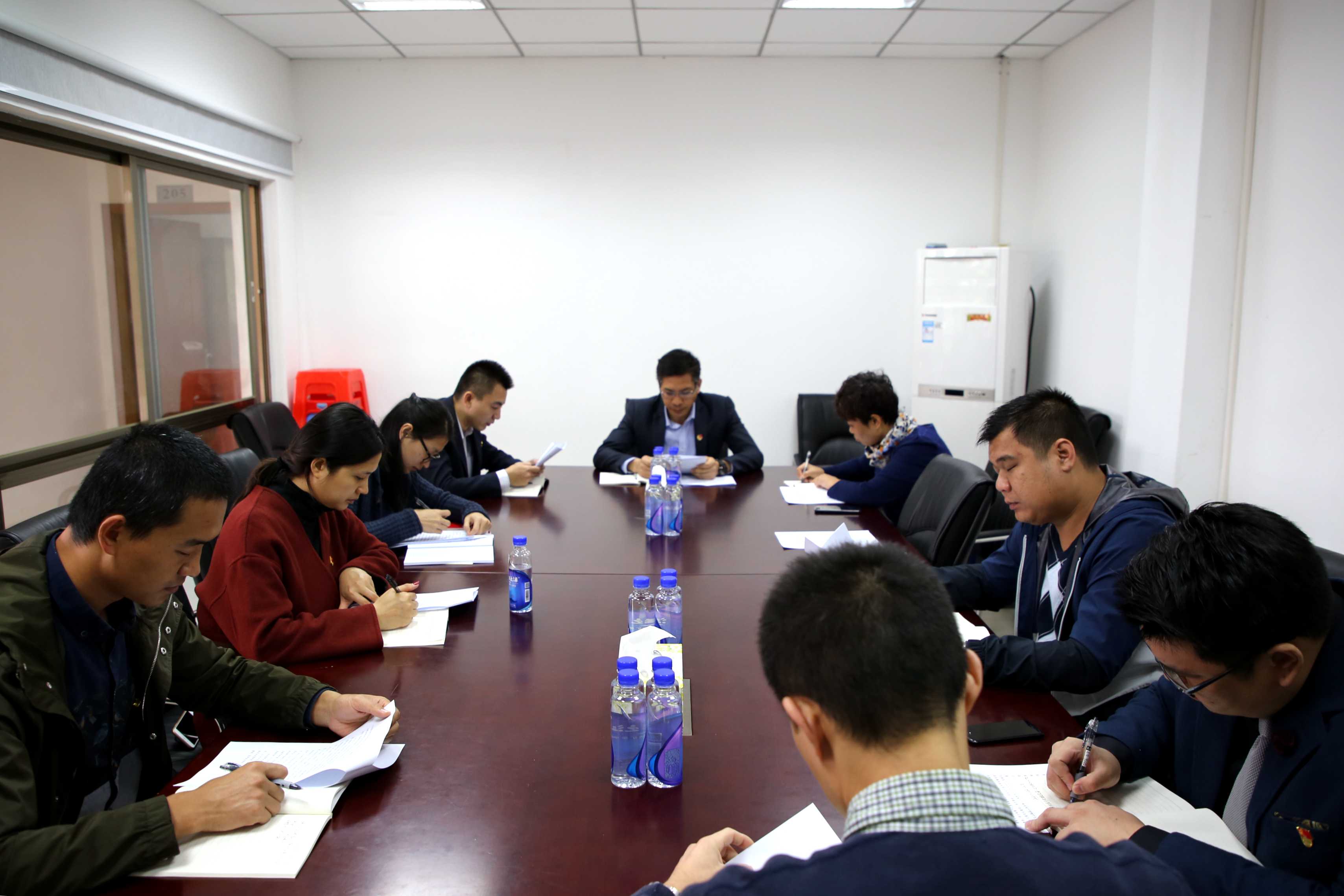 1月25日上午九點半,大橫琴城資公司黨支部書記、公司總經理鄭進博同志在橫琴苗圃會議室主持召開公司黨支部黨員會議,傳達學習貫徹黨的十九屆二中全會會議精神。該會議首先由黨支部組織(兼紀檢)委員楊聚鋒同志領讀十九屆二中全會公報,然后由黨支部書記鄭進博同志帶領全體黨員進行了深入學習和解讀。