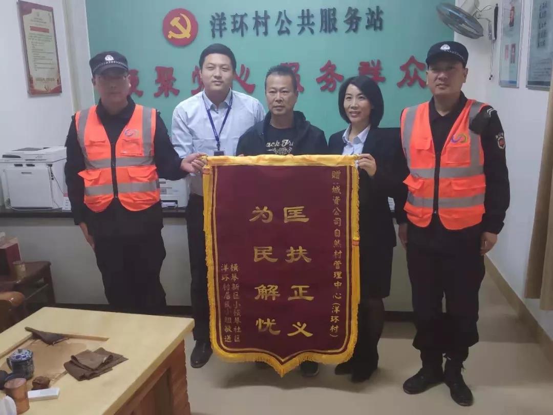 橫琴新區(qū)小橫琴社區(qū)、洋環(huán)村居民小組贈(zèng)予自然村管理中心錦旗及表?yè)P(yáng)信