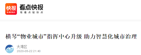 橫琴“物業(yè)城市”大數(shù)據(jù)平臺二期正式上線