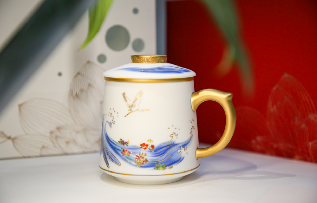 材質/工藝:羊脂白玉瓷描金琺瑯彩,杯柄及蓋粒為12K鍍金