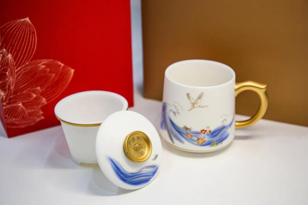 材質/工藝:羊脂白玉瓷描金琺瑯彩,蓋粒及金杯為12k鍍金