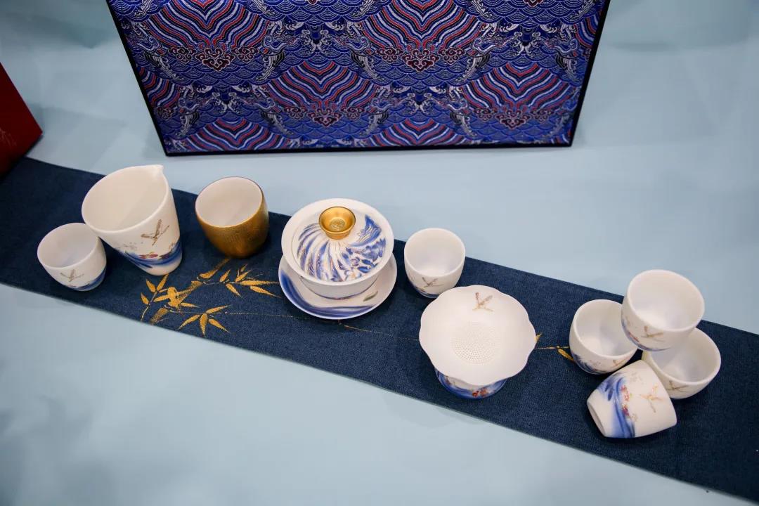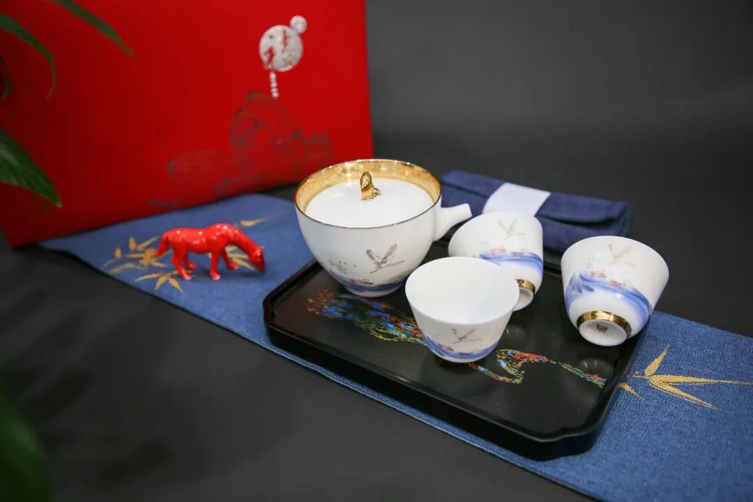 材質/工藝:羊脂白玉瓷描金琺瑯彩,蓋粒、小茶杯底座為12K鍍金