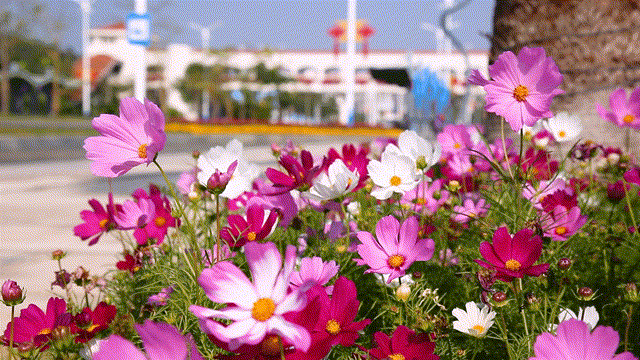 各色花卉爭相開放