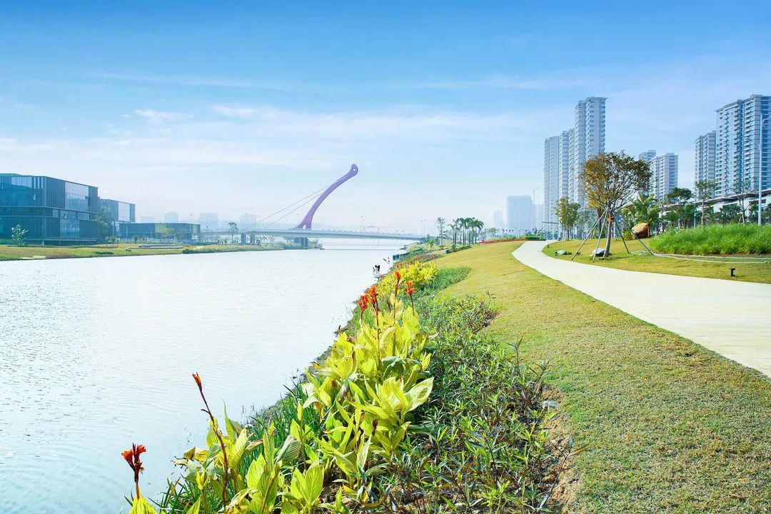 天沐河碧道以海綿城市、系統治理為建設理念,以保障水安全、梳理水動脈、修復水生態、建設水景觀、豐富水旅游、傳承水文化為主要建設方案,是橫琴新區重要的生態廊道,也是市民休閑娛樂的好去處。