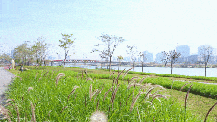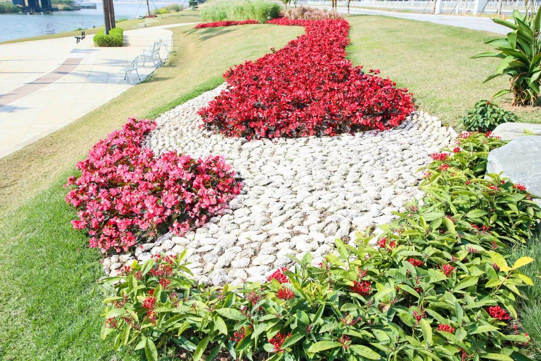 兩岸花團錦簇,綠意盎然