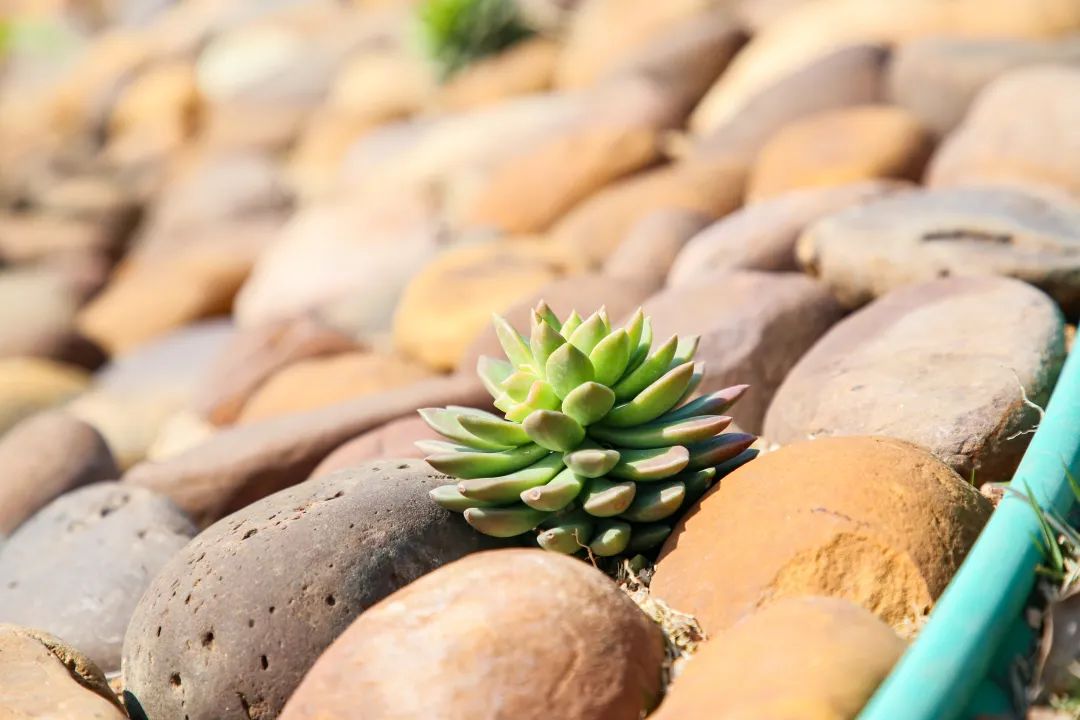 替代石材鋪設在花叢中