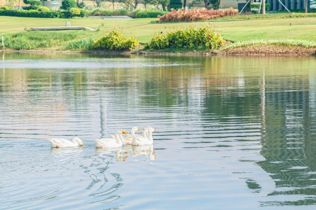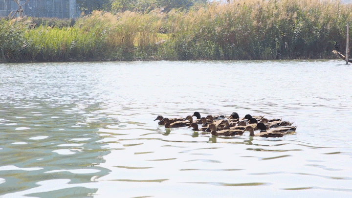成群的野鴨歡快地在水中嬉戲