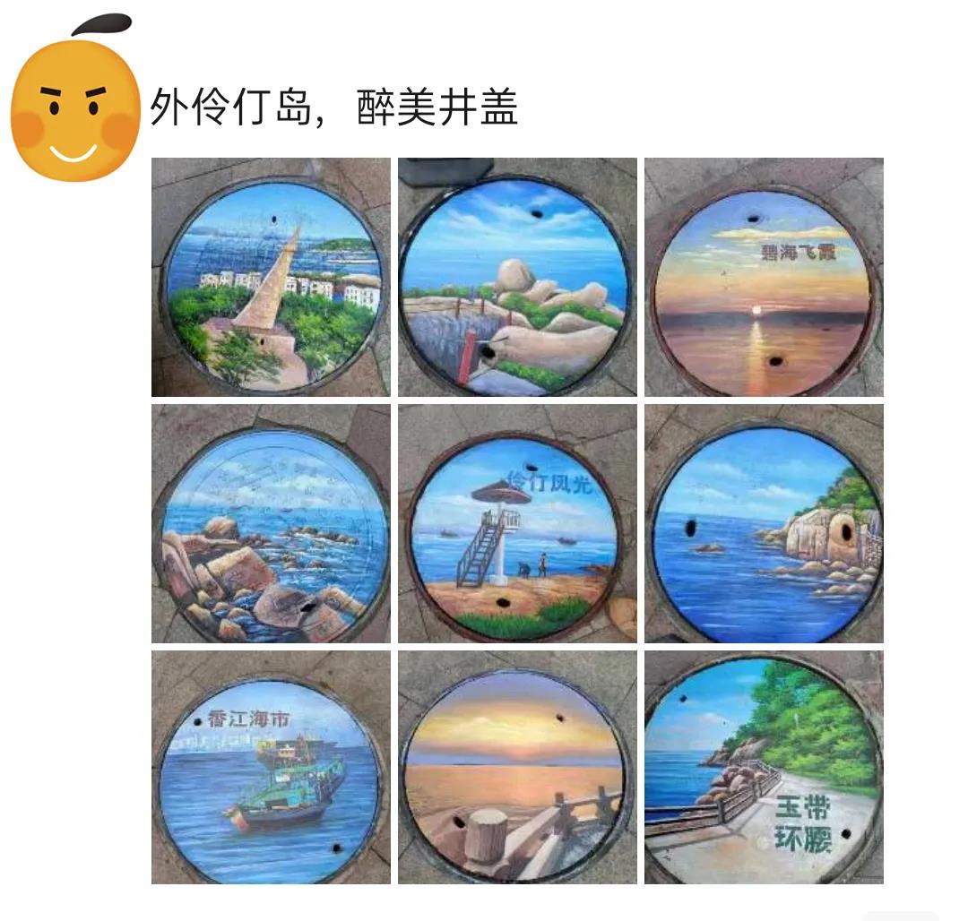 創(chuàng)新性地將“伶仃八景”“伶仃三寶”和垃圾分類等元素融入到井蓋彩繪創(chuàng)作中,以小見大。目前全島60個(gè)井蓋彩繪已全部完成。小小的井蓋成為提升海島品質(zhì)、展示海島特色的重要元素,成為海島的一道“微景觀”,吸引眾多游客駐足觀賞、拍照分享。