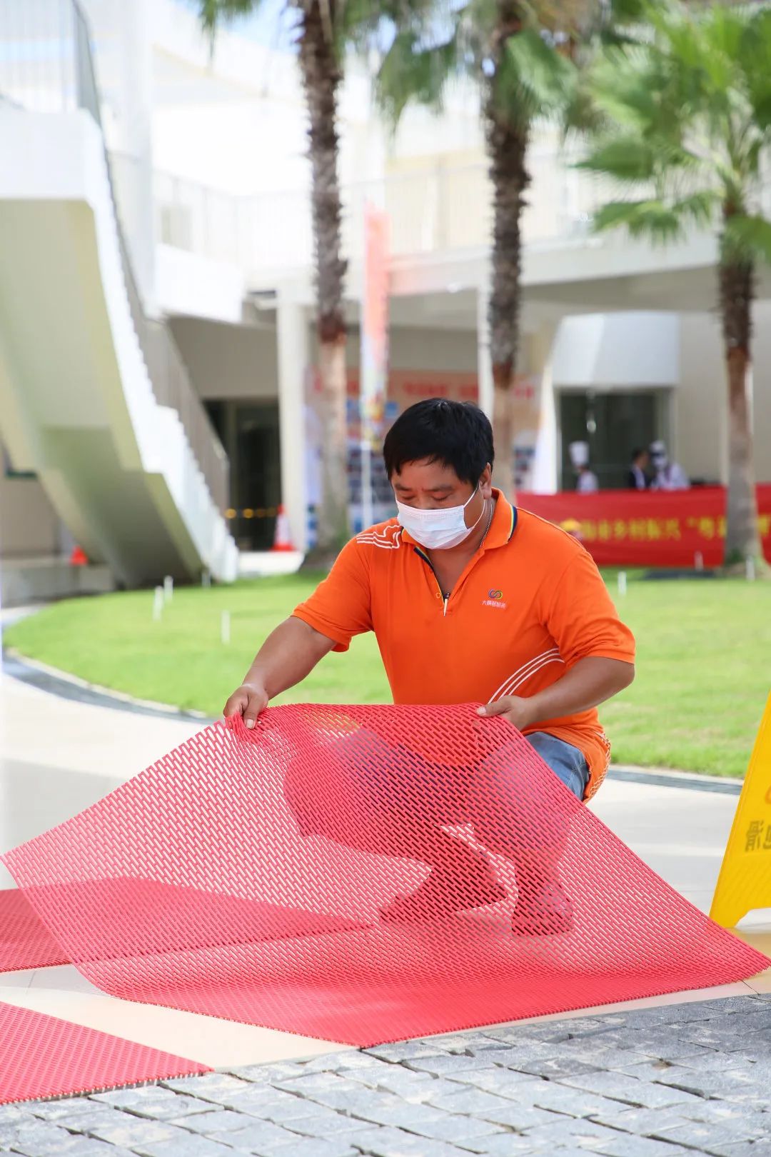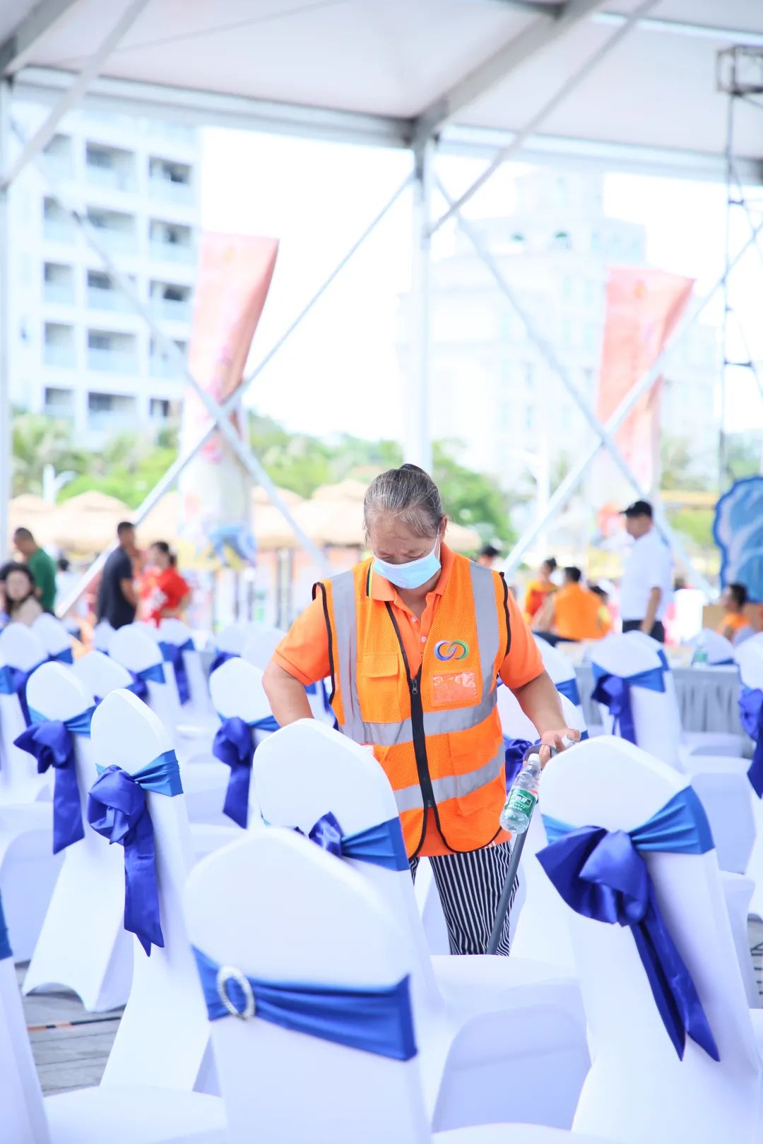 此次豐收節,“好望角”桂山項目管理部除協助保障主會場布置及保潔工作外,還重點負責文化中心廚師大賽分會場的保障工作以及全日保潔,包括鋪設防滑墊,擺放立錐、膠馬等。