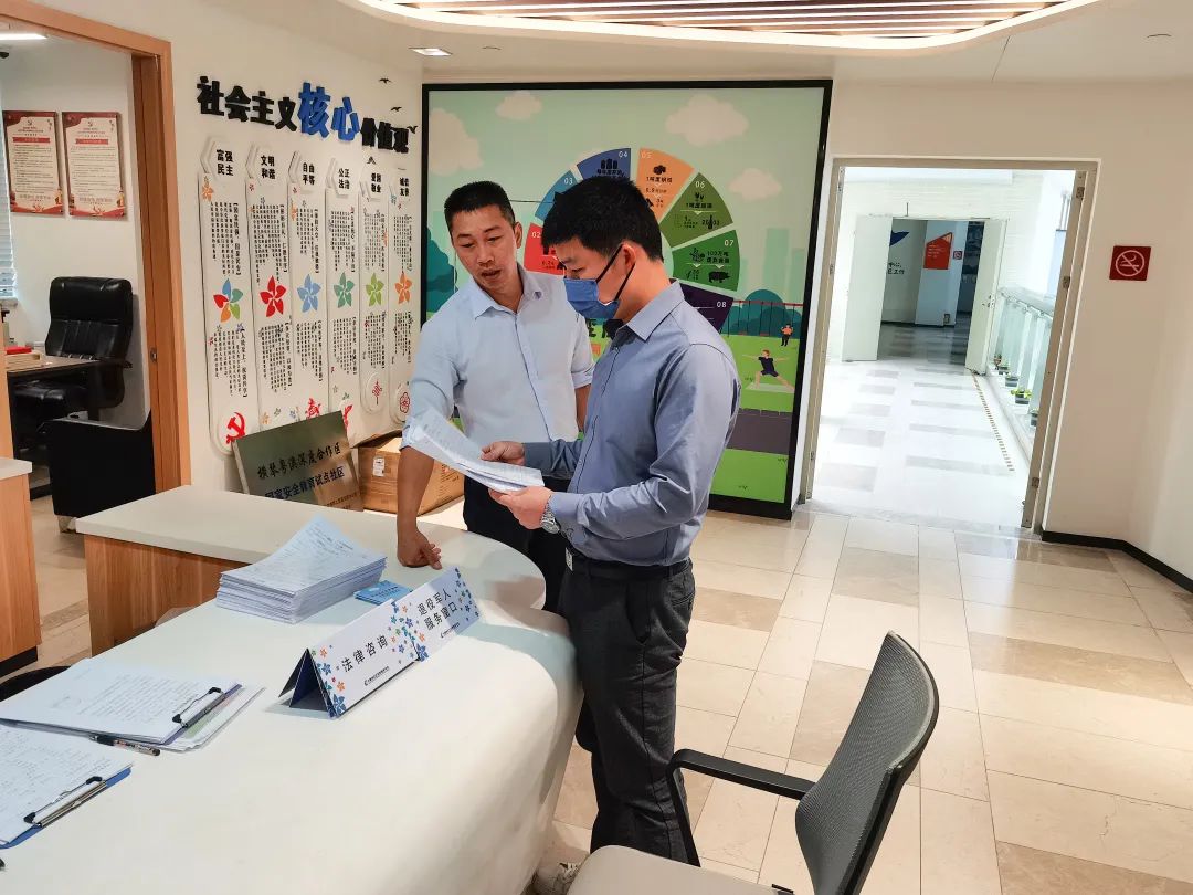 ▲廣東省政府橫琴辦政法工作處科長劉雙鳳到小橫琴社區檢查防疫工作情況
