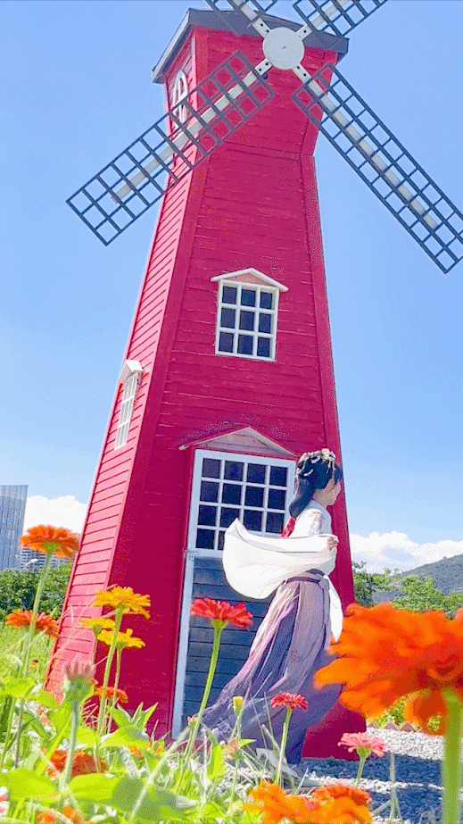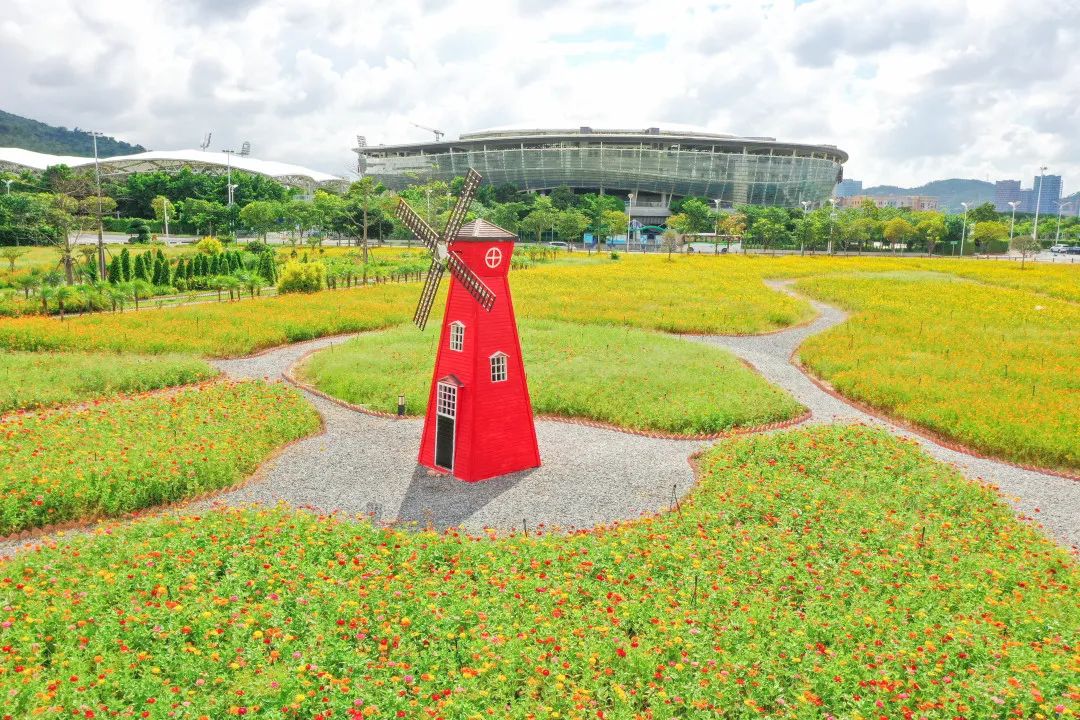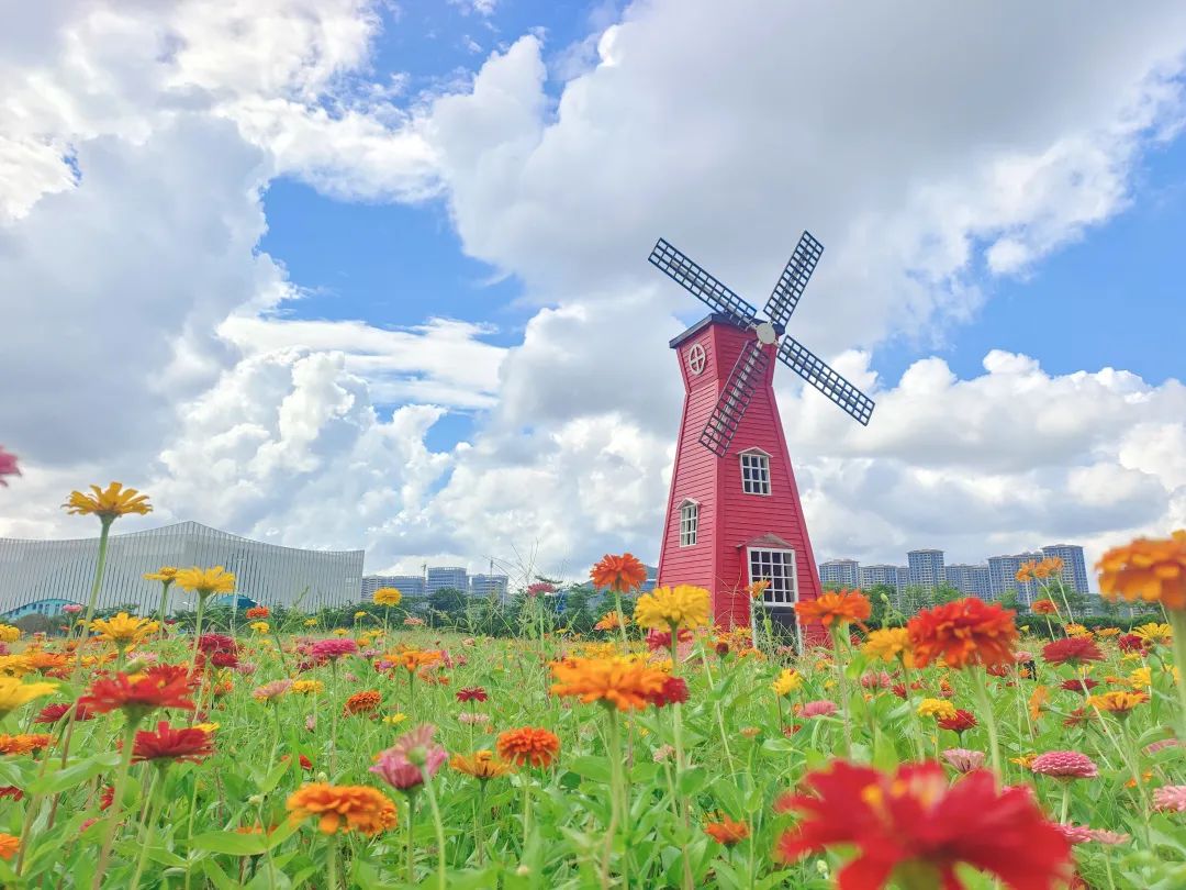 與花海中的風車景觀來個同框打卡