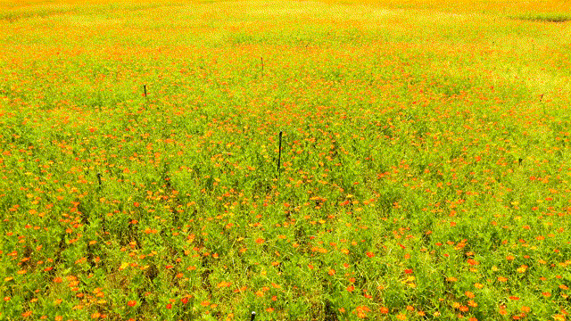 連綿起伏的硫華菊花海搖曳生姿
