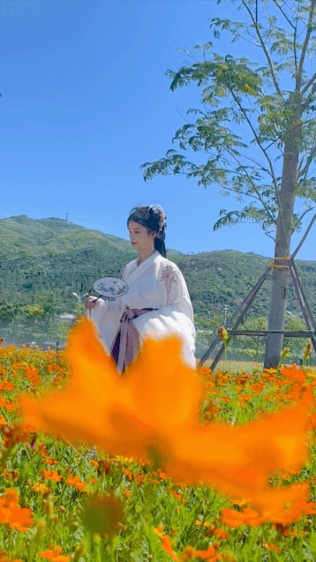 穿上漢服在花海中穿梭