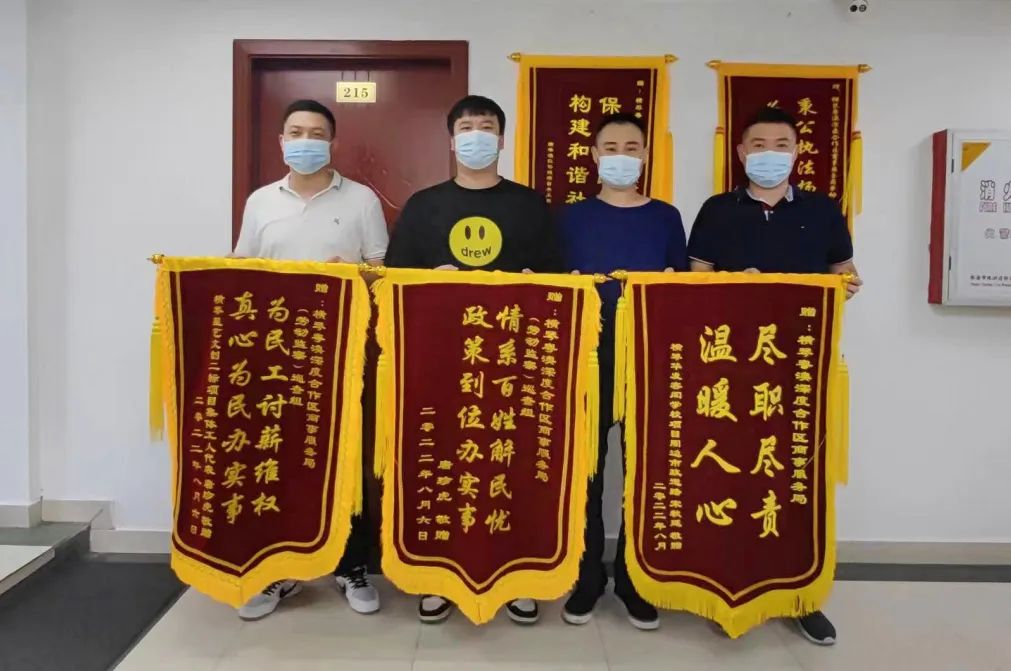 今年8月,輔助勞動監察服務項目在勞動糾紛處置工作中通過積極組織相關單位展開協商,有效化解了群眾欠薪難題,獲得了來自勞動者贈與的錦旗三面,進一步夯實了輔助政務工作人員為民服務解難題的信心。