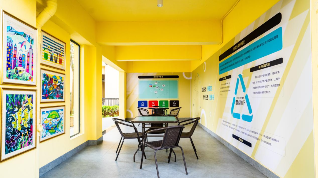 橫琴新家園小區共有9棟住宅樓,入住居民923戶。小區垃圾分類示范點建設初期,大橫琴城資瞄準居民對公共休憩空間的需求,將小區的垃圾廂房提升改造為垃圾分類驛站,設置休憩宣教區、分類投放區、存桶區,增加搖椅、休閑桌椅及花池,并進行墻面美化噴繪。“我們小區的垃圾廂房不再是臟亂差的地方,而是居民休閑、娛樂的好去處,每日必‘打卡’的景點。”居民王阿姨自豪地說。