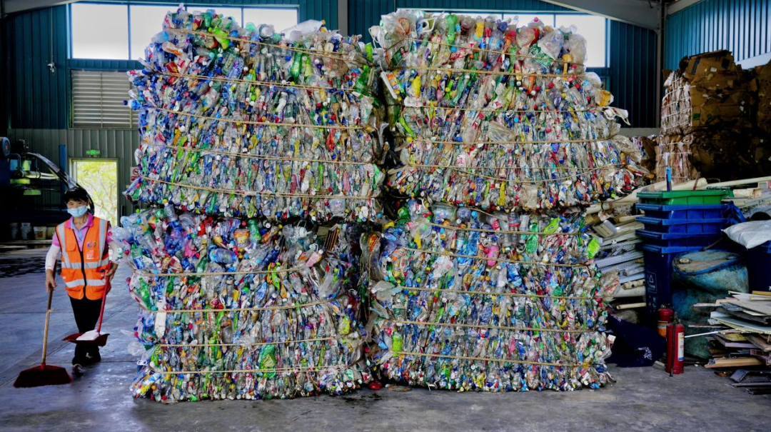 ▲在橫琴再生資源循環利用中心,泡沫、塑料等可回收物進入相應的渠道處置利用