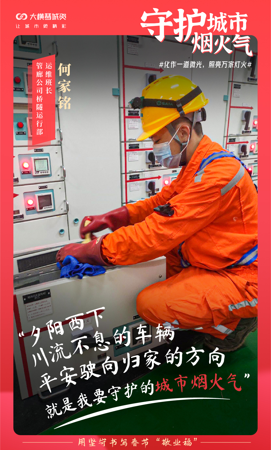 從事橫琴橋隧運維工作剛滿五年的他,有四年春節都是在崗位上度過。每天和同事24小時輪流值班,開展路面巡查、隧道設備檢修、突發故障搶修,他試過凌晨3點在隧道口路邊揮動閃光棒,反復提醒來往車輛駕駛者:“隧道內照明燈突發故障,請減速慢行”;也試過在車流高峰期緊急調派公司的拖車,將隧道內熄火的車輛拉至安全地帶……每一次車輛安全“脫險”的正面反饋,都是他前進的動力。