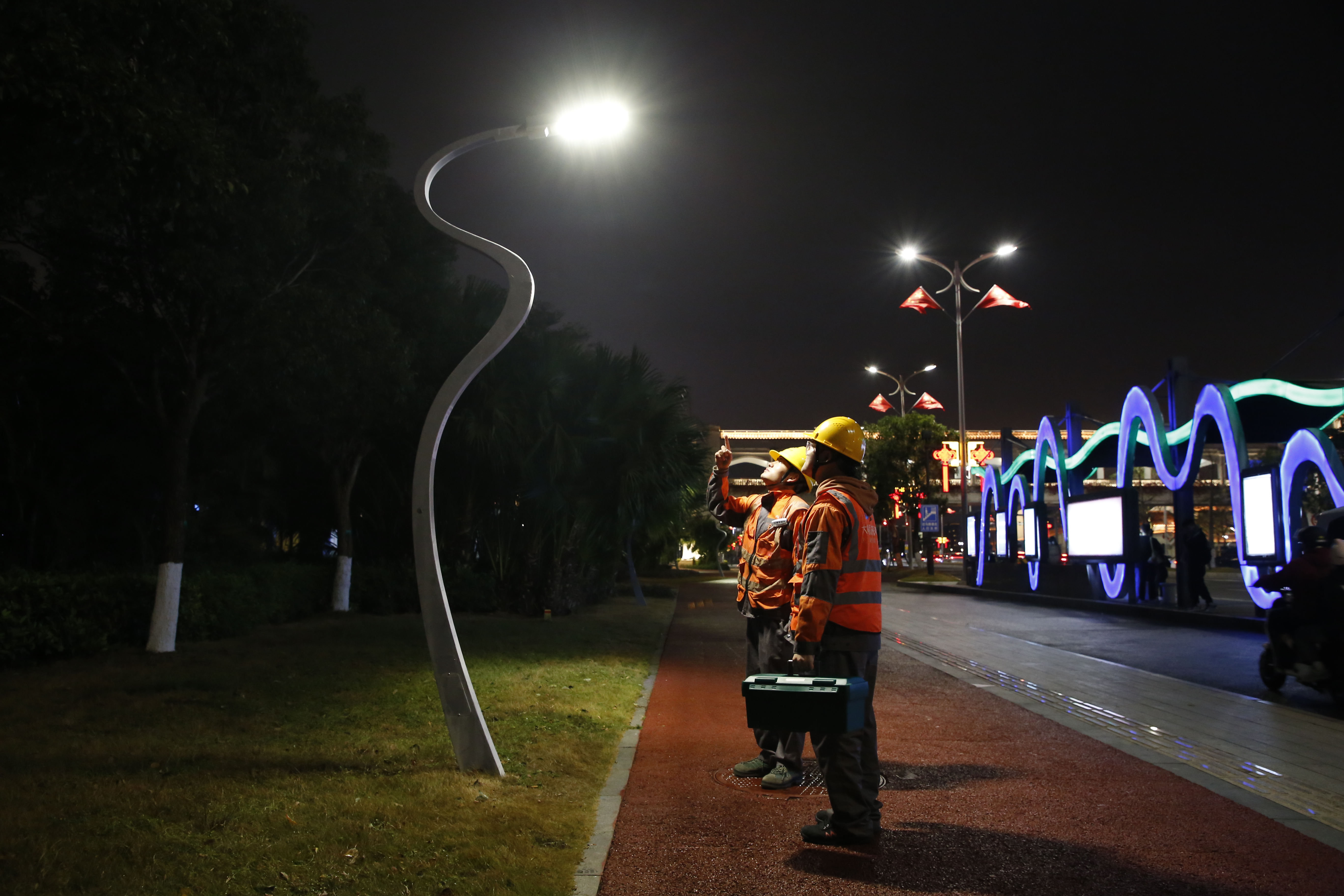 映襯著照明養(yǎng)護(hù)人員忙碌的身影