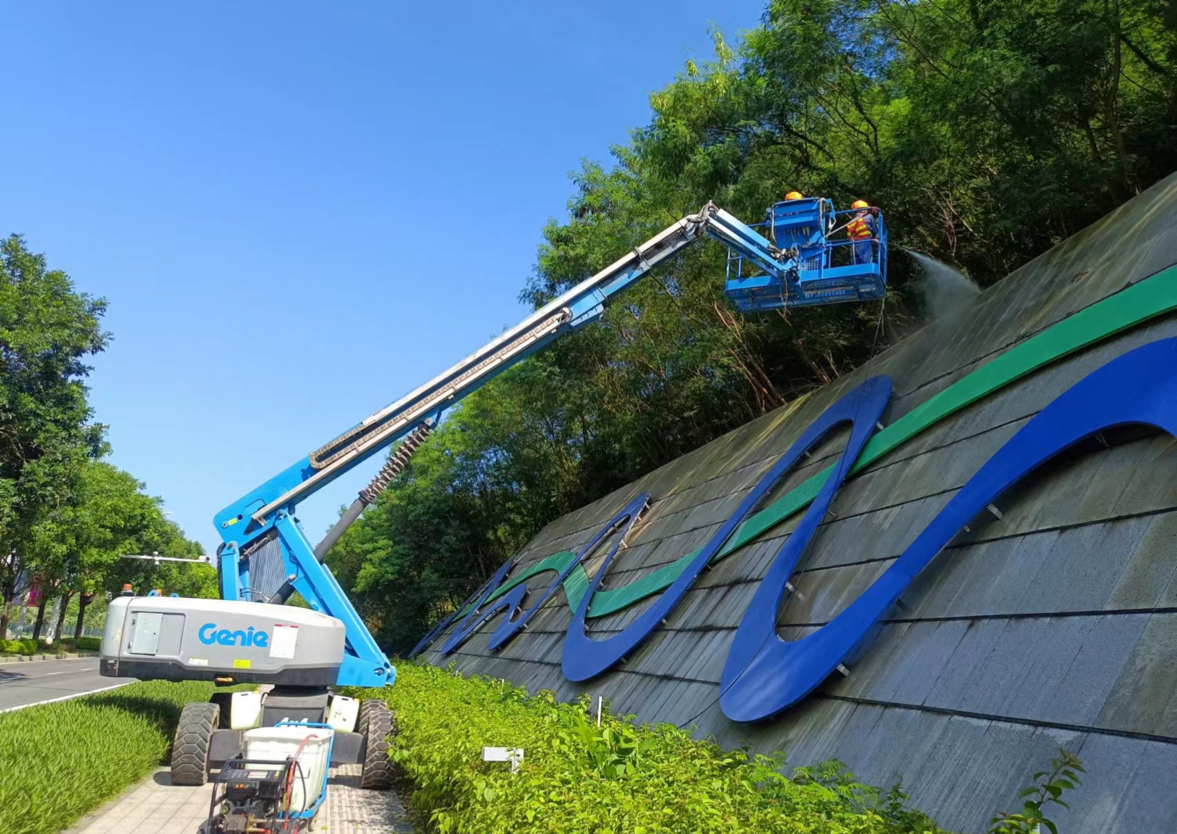 對環島東路的標志性飄帶墻進行精細清洗,讓這道城市風景線以更加靚麗的面貌迎接八方來客,展現合作區的熱情與活力。