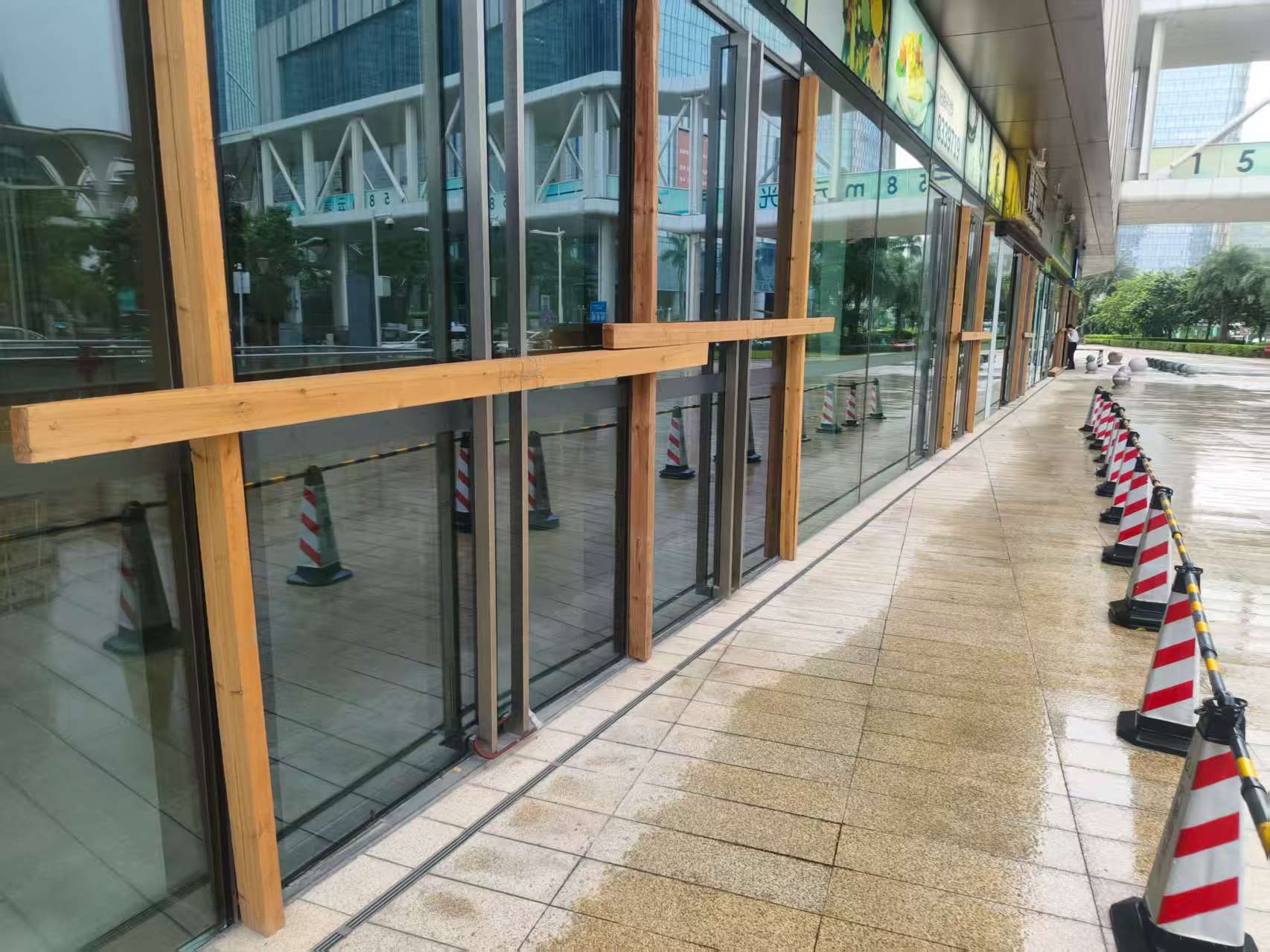 巡查在管的橫琴總部大廈、新家園小區(qū)、銀鑫花園小區(qū)等物業(yè)項(xiàng)目,及時(shí)布設(shè)防汛物資,并做好防風(fēng)加固工作
