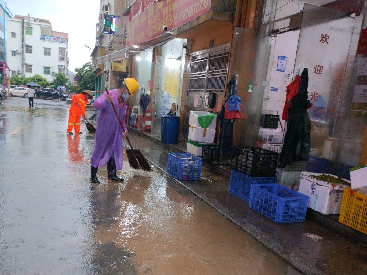 調(diào)度六個(gè)雨水泵站排水,降低村居內(nèi)水位。對(duì)下村排洪渠、向陽(yáng)村土渠、琴韻變電站土渠、洋環(huán)村土渠等多處重點(diǎn)排水口進(jìn)行檢查和清理飄浮垃圾,防止暴雨沖刷垃圾堵住排水口,并對(duì)上村排水溝擋墻破損進(jìn)行修補(bǔ)。