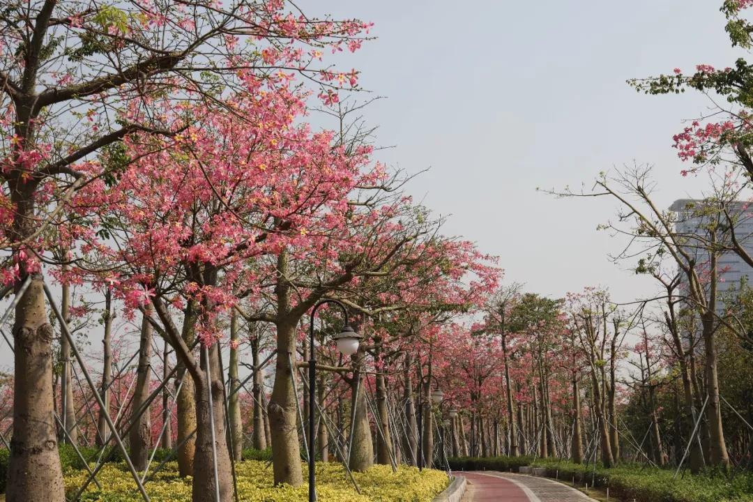 花海與珠澳兩岸氣勢恢弘的高樓大廈相互輝映