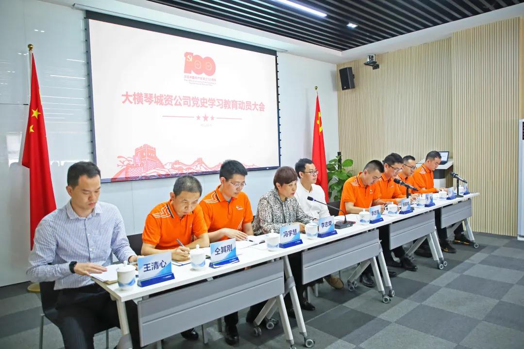 會議宣讀了《大橫琴城資公司關于開展黨史學習教育的實施方案》、《大橫琴城資公司黨史學習教育領導小組組成人員主要職責及工作制度》和《大橫琴城資公司黨史學習教育工作計劃》。2021年,大橫琴城資黨史學習教育將貫穿全年,以公司領導班子、黨支部委員為重點,在公司黨支部、黨員和中層以上干部中全面開展。重點突出學黨史、悟思想、辦實事、開新局,在開展專題學習、加強政治引領、組織專題培訓、開展“我為群眾辦實事”實踐活動、召開專題組織生活會等方面精心組織、周密部署,立足實際、守正創新,高質量高標準完成各項任務。